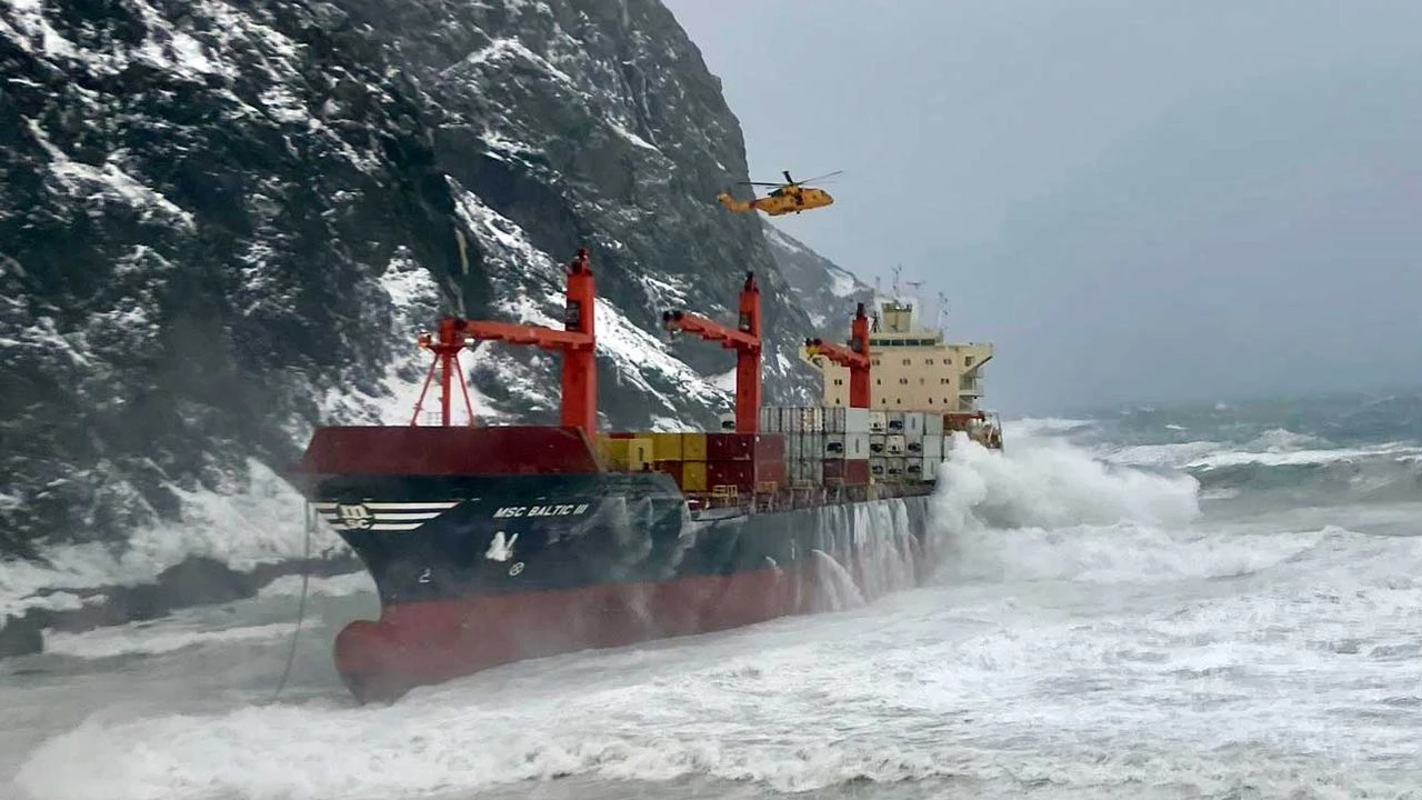 St. John’s, Newfoundland – A dramatic rescue unfolded off the coast of Newfoundland on Saturday as a large container ship, the MSC Baltic III, ran aground during a fierce winter storm. The vessel, carrying 20 crew members, lost power and was unable to anchor in the turbulent seas, ultimately drifting aground in Wild Cove, west of Lark Harbour.